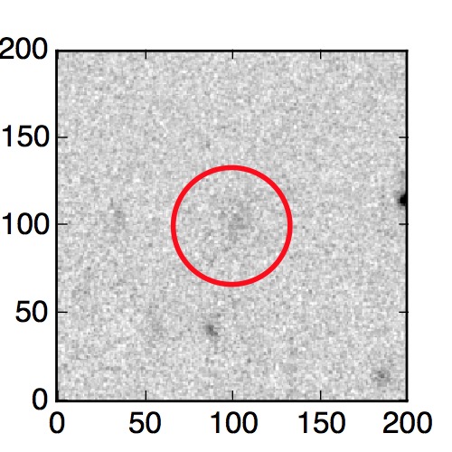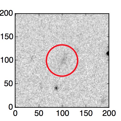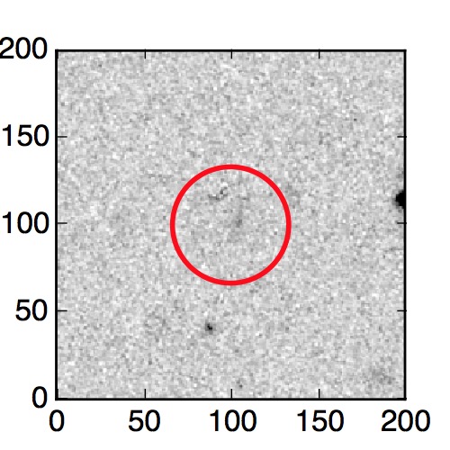The red circle in the various panels is 1" in radius. The images are 6"x6".