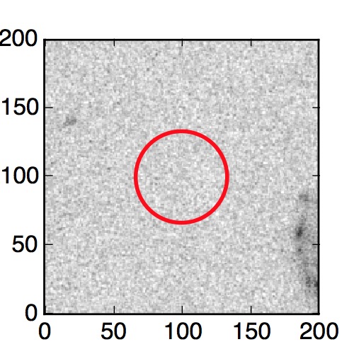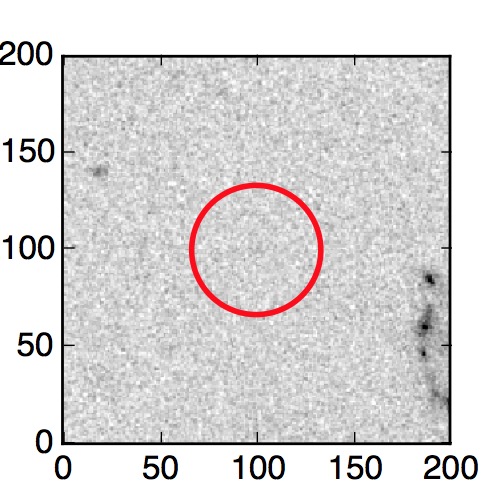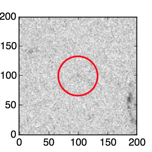 The red circle in the various panels is 1" in radius. The images are 6"x6".