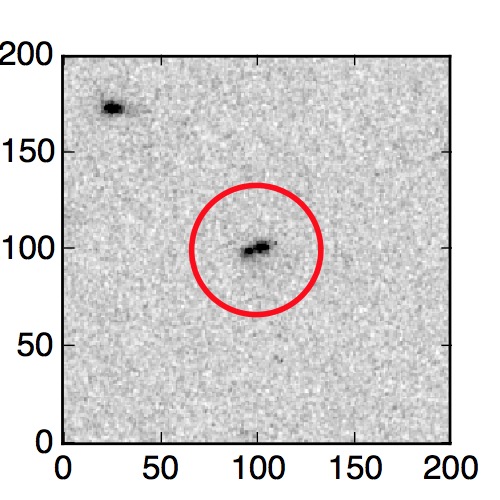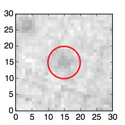 The red circle in the various panels is 1" in radius. The images are 6"x6".