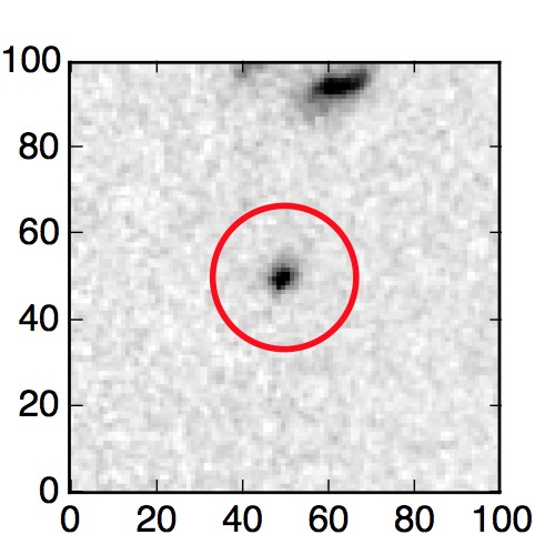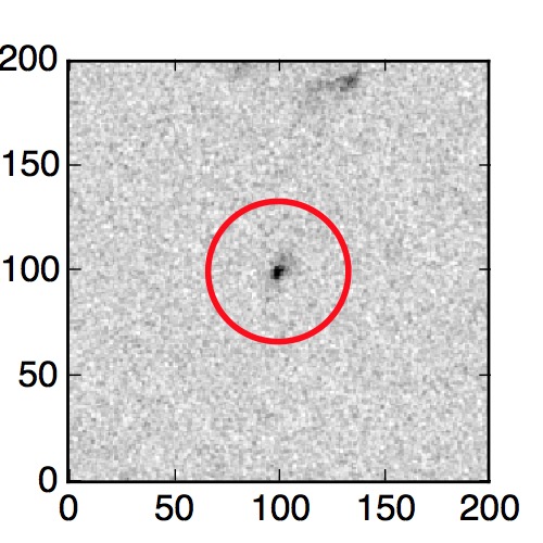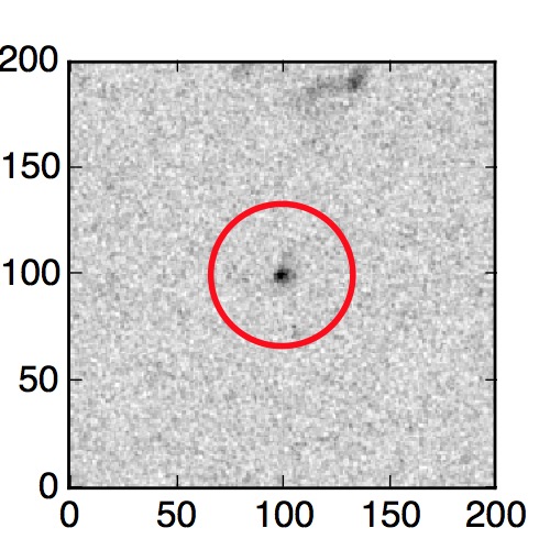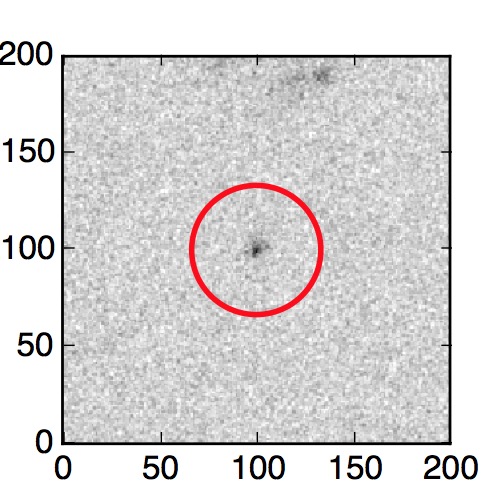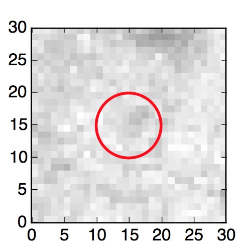The red circle in the various panels is 1" in radius. The images are 6"x6".