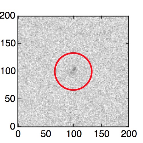 The red circle in the various panels is 1" in radius. The images are 6"x6".