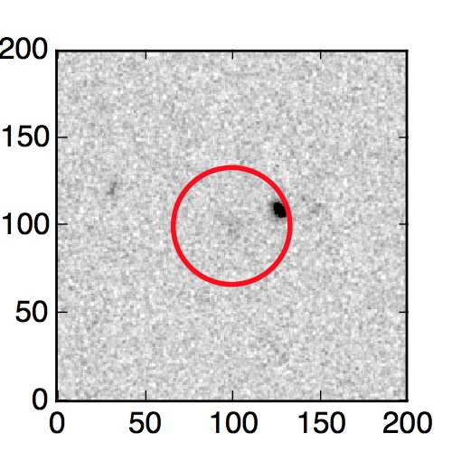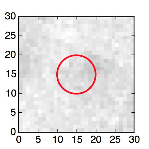 The red circle in the various panels is 1" in radius. The images are 6"x6".