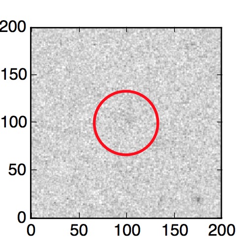 The red circle in the various panels is 1" in radius. The images are 6"x6".
