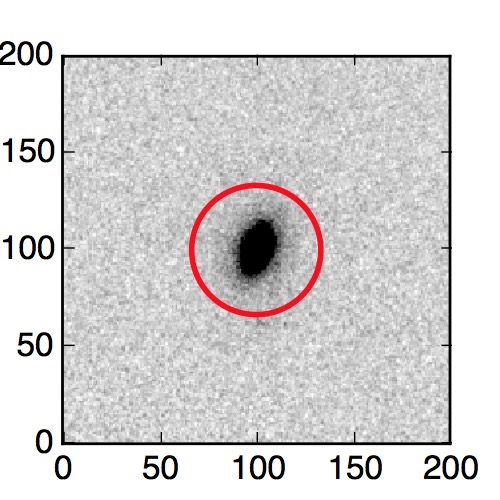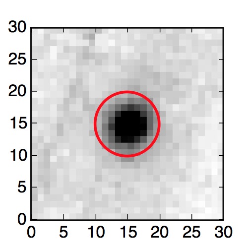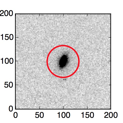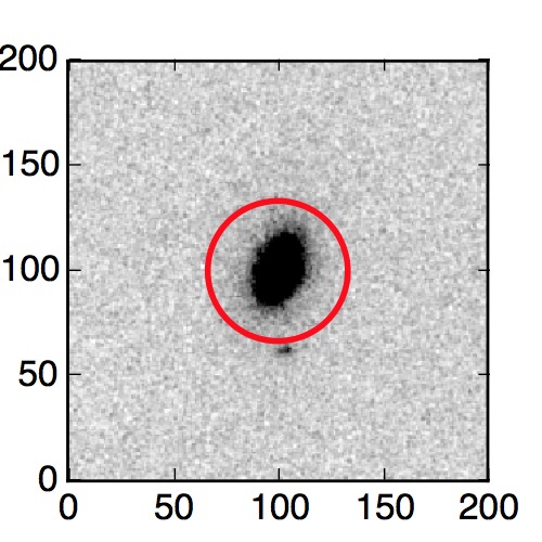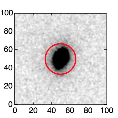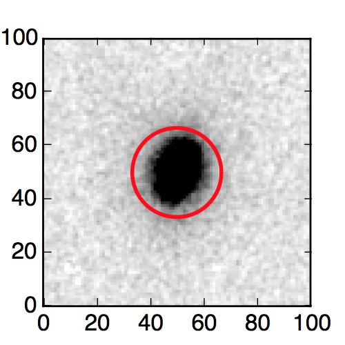 The red circle in the various panels is 1" in radius. The images are 6"x6".