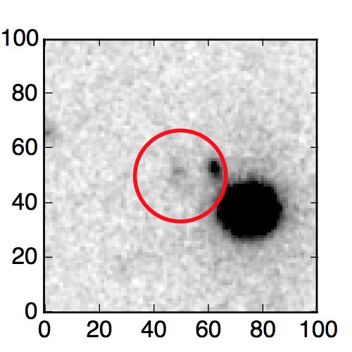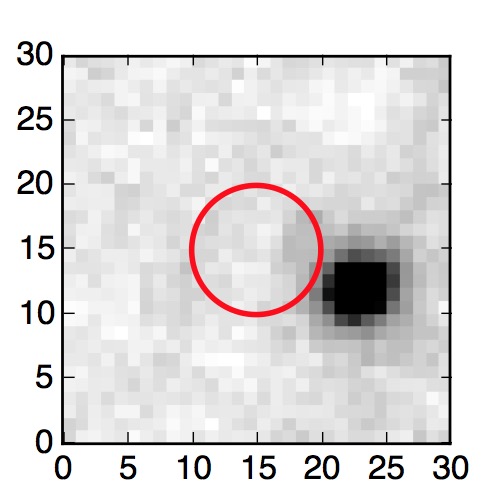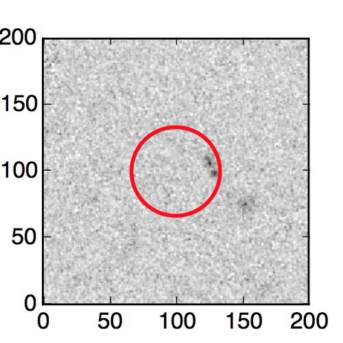 The red circle in the various panels is 1" in radius. The images are 6"x6".