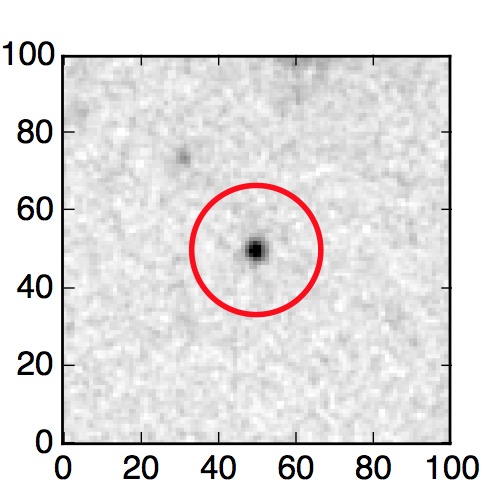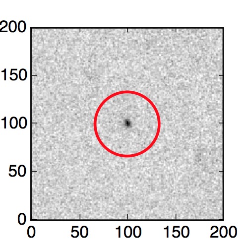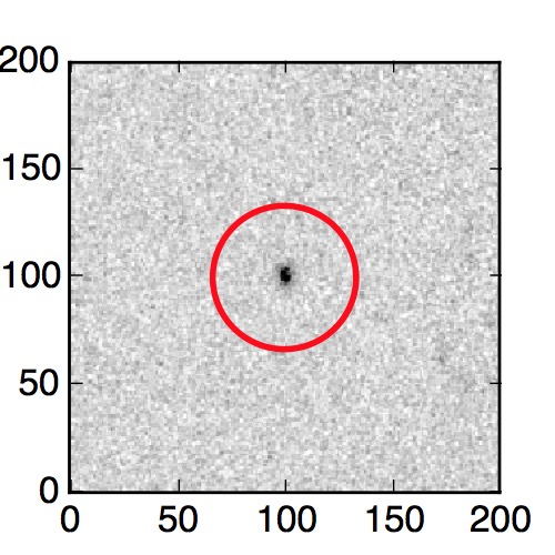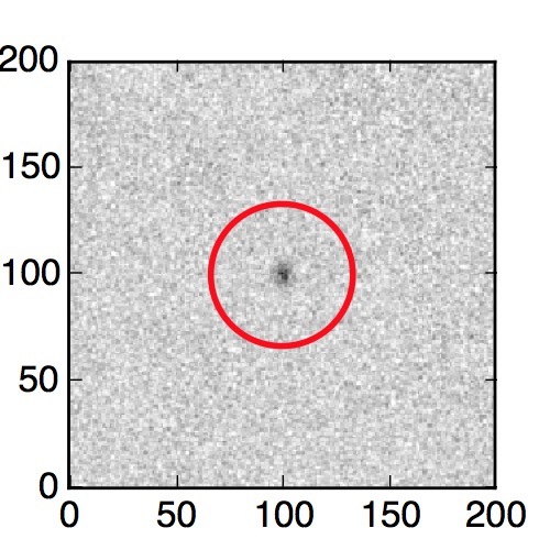 The red circle in the various panels is 1" in radius. The images are 6"x6".