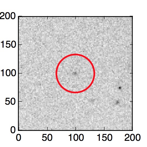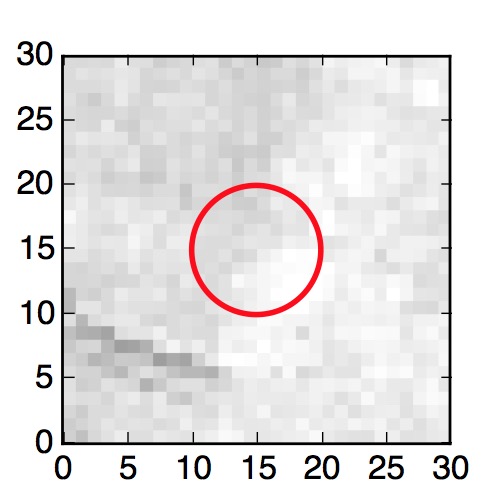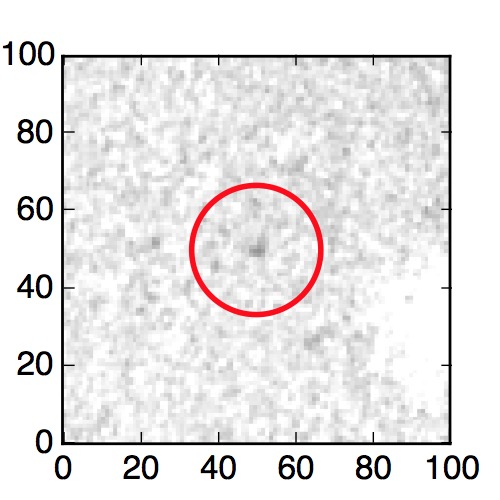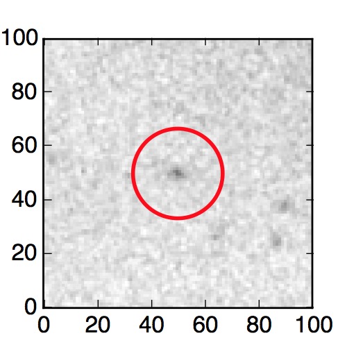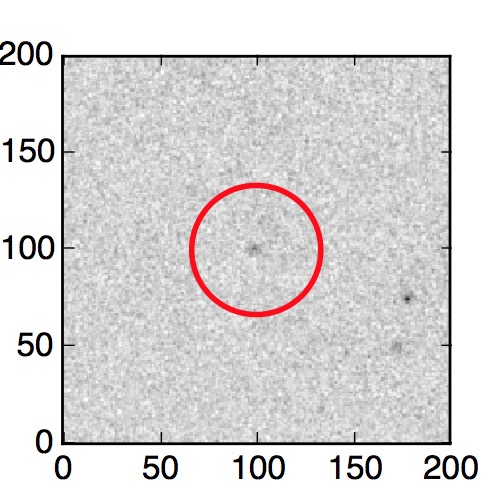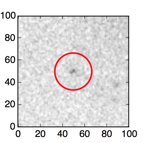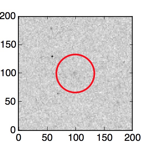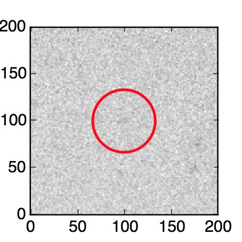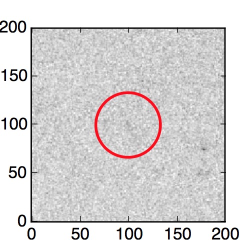 The red circle in the various panels is 1" in radius. The images are 6"x6".