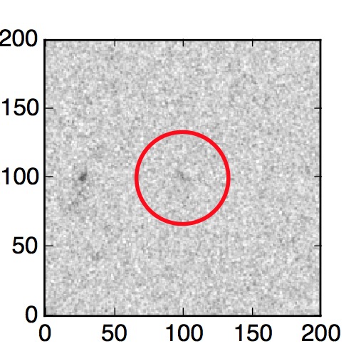 The red circle in the various panels is 1" in radius. The images are 6"x6".