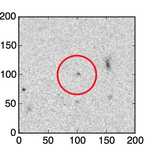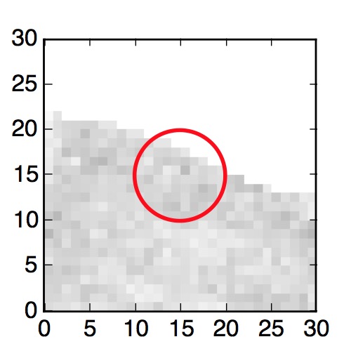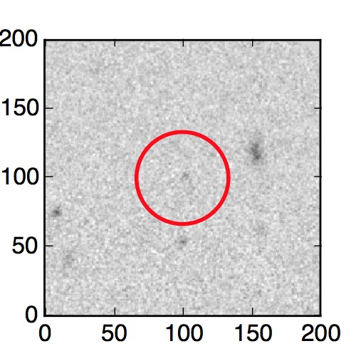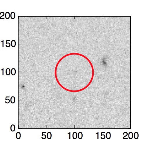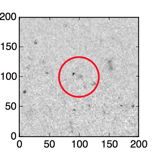 The red circle in the various panels is 1" in radius. The images are 6"x6".