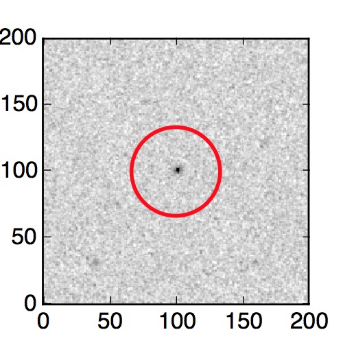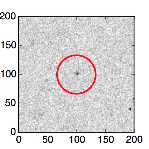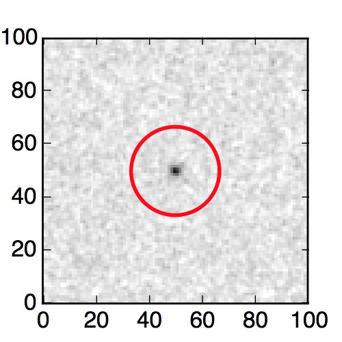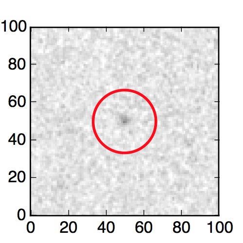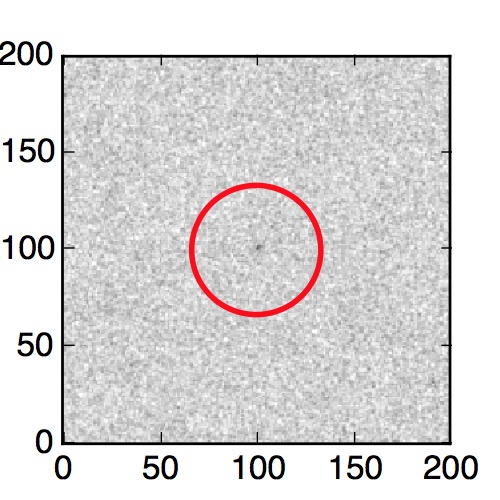 The red circle in the various panels is 1" in radius. The images are 6"x6".