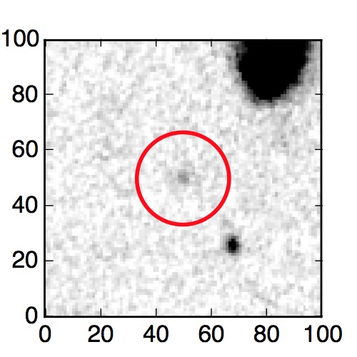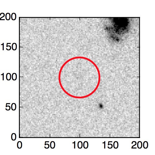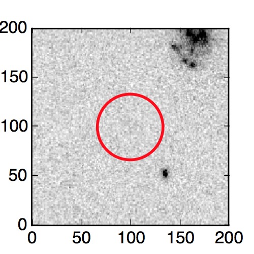 The red circle in the various panels is 1" in radius. The images are 6"x6".