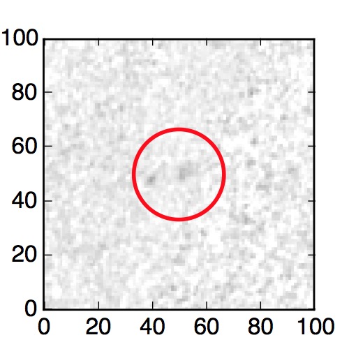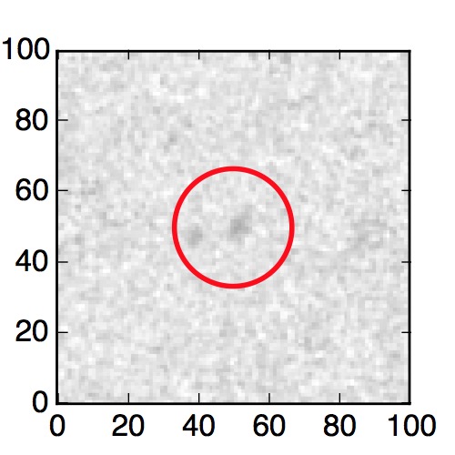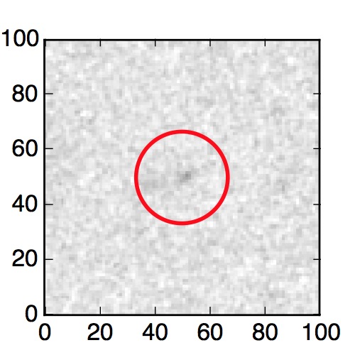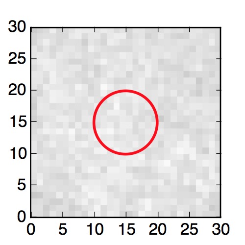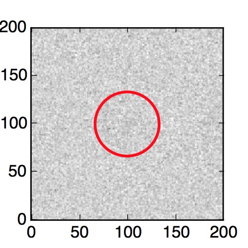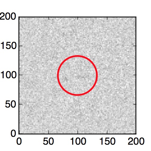 The red circle in the various panels is 1" in radius. The images are 6"x6".