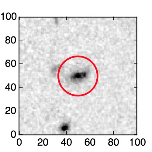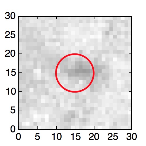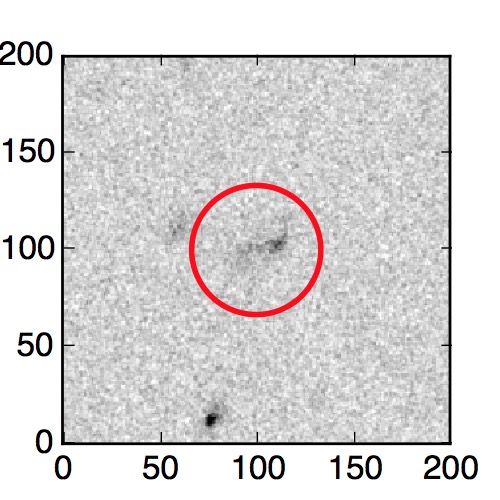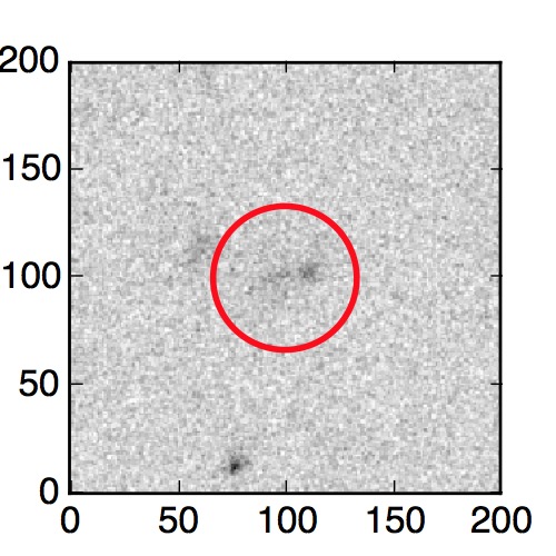 The red circle in the various panels is 1" in radius. The images are 6"x6".