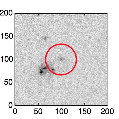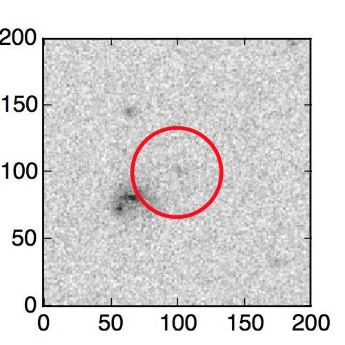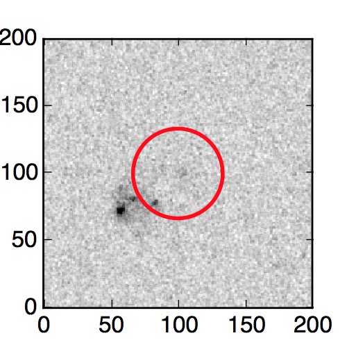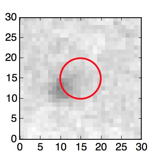The red circle in the various panels is 1" in radius. The images are 6"x6".