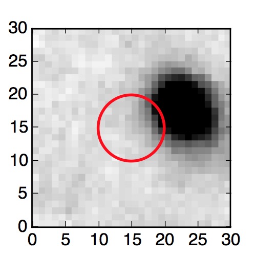 The red circle in the various panels is 1" in radius. The images are 6"x6".