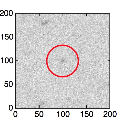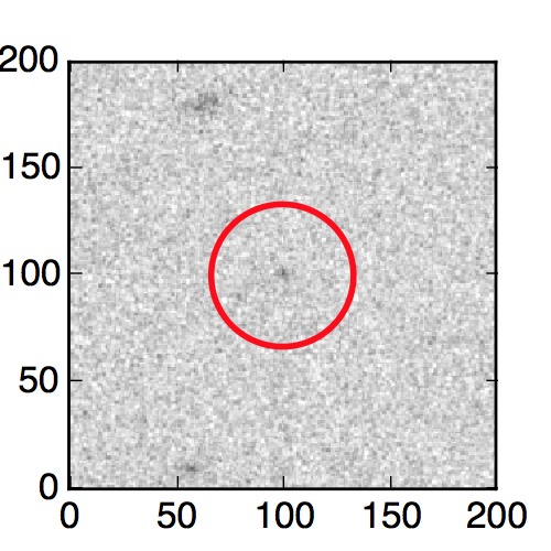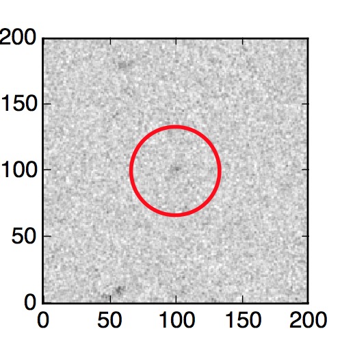The red circle in the various panels is 1" in radius. The images are 6"x6".
