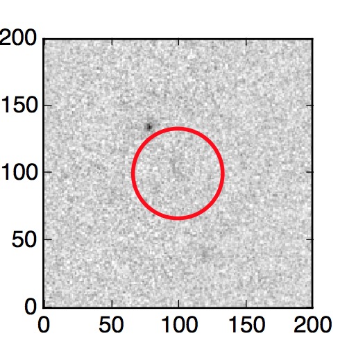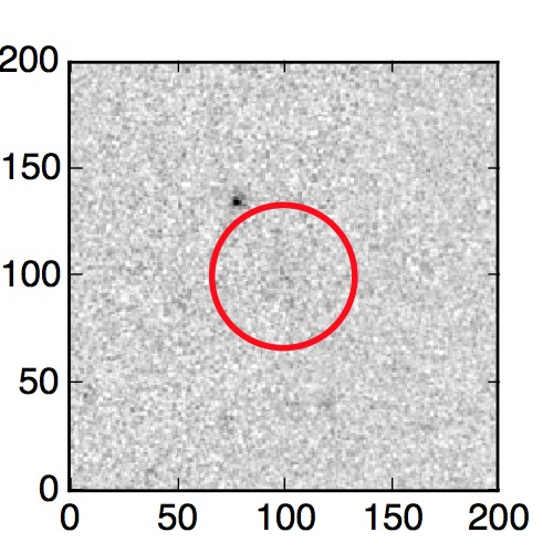 The red circle in the various panels is 1" in radius. The images are 6"x6".