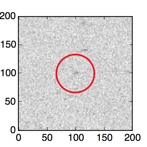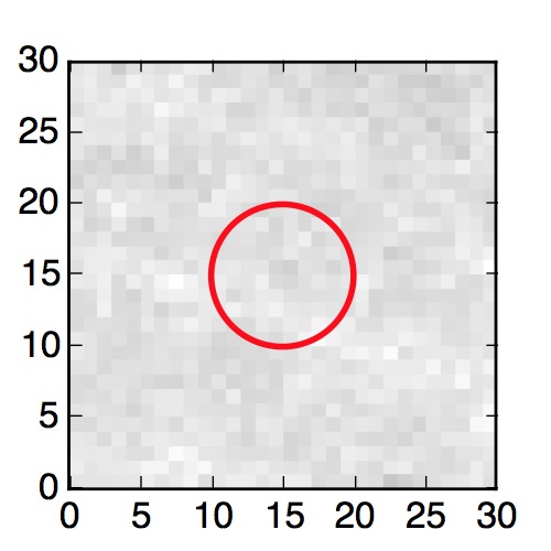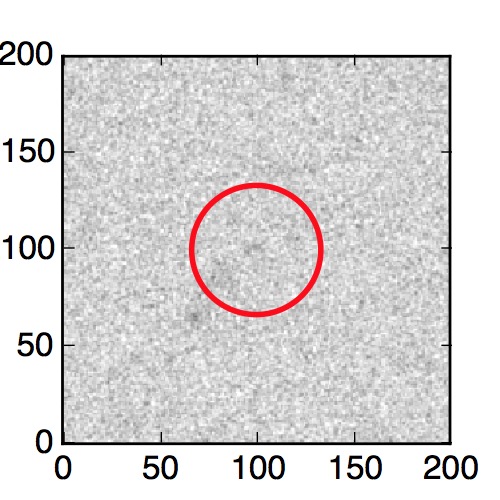 The red circle in the various panels is 1" in radius. The images are 6"x6".