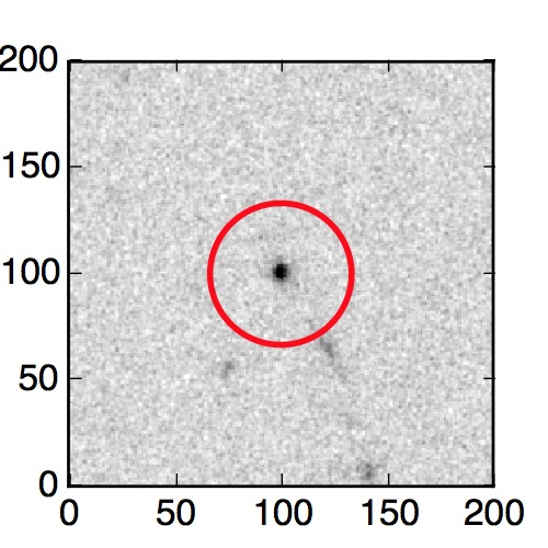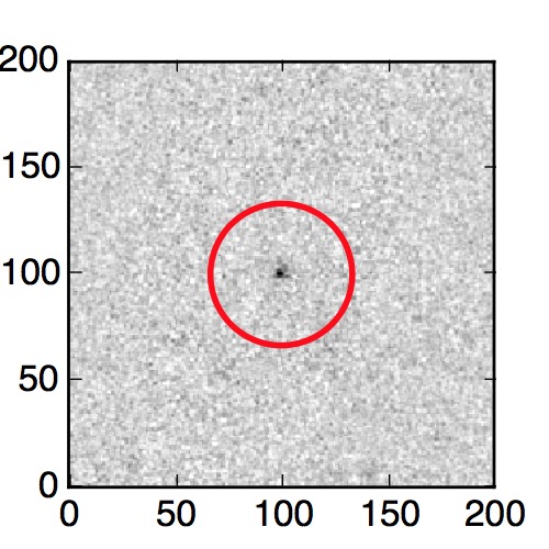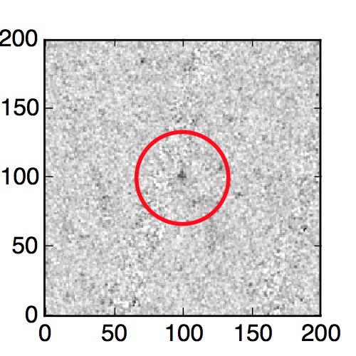 The red circle in the various panels is 1" in radius. The images are 6"x6".