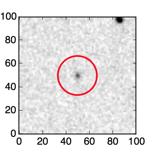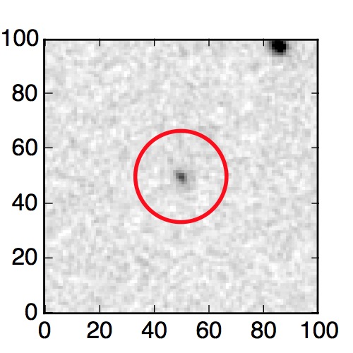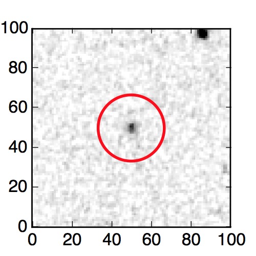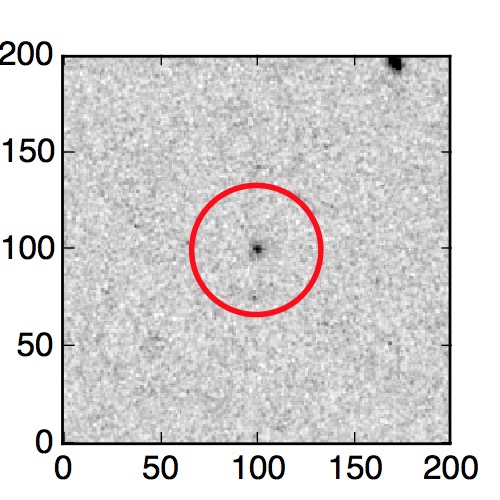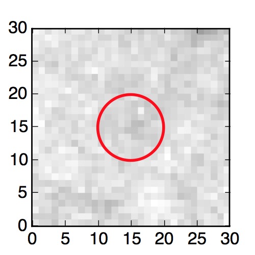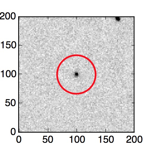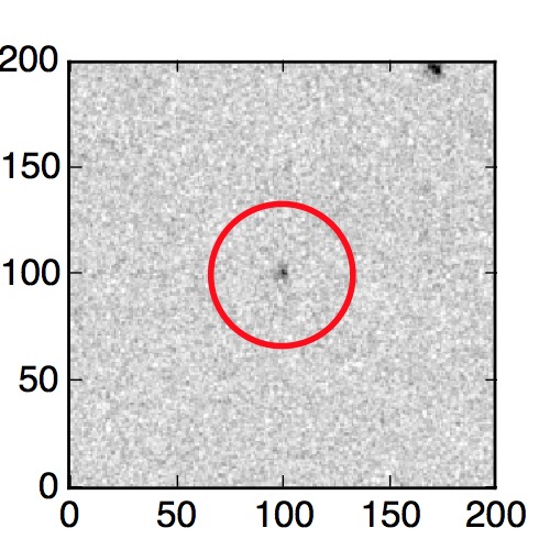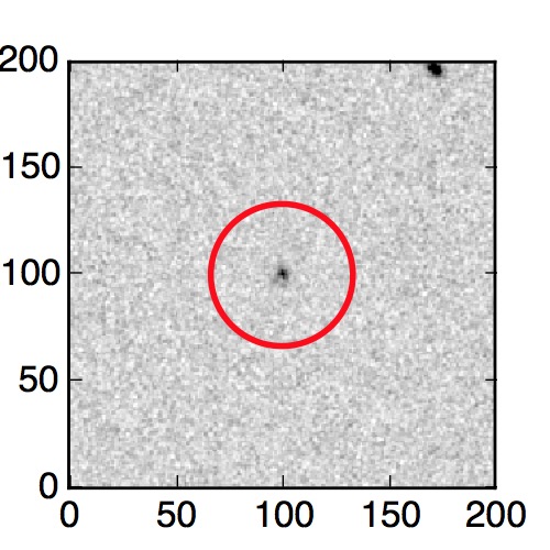 The red circle in the various panels is 1" in radius. The images are 6"x6".