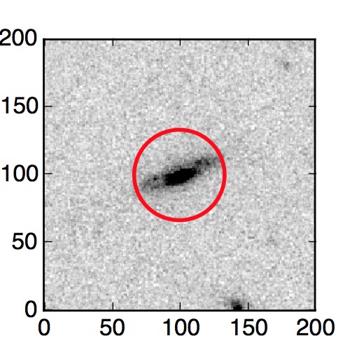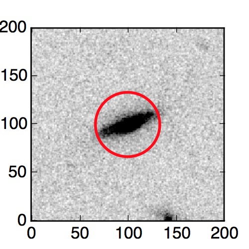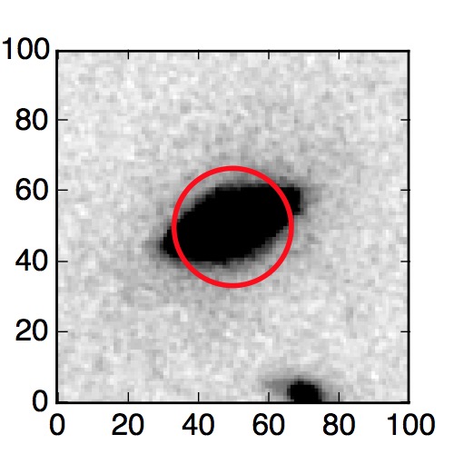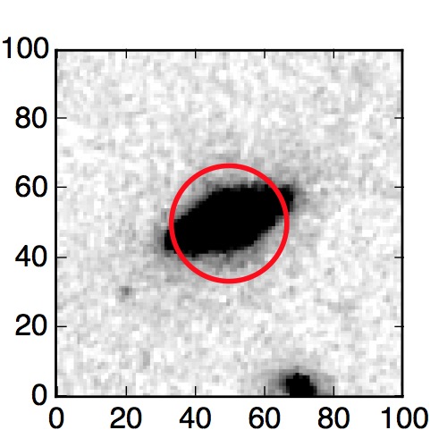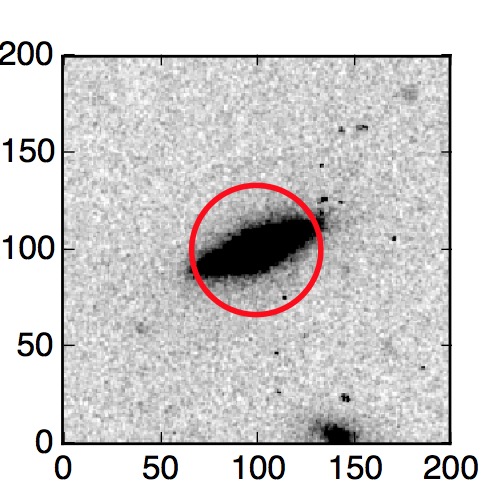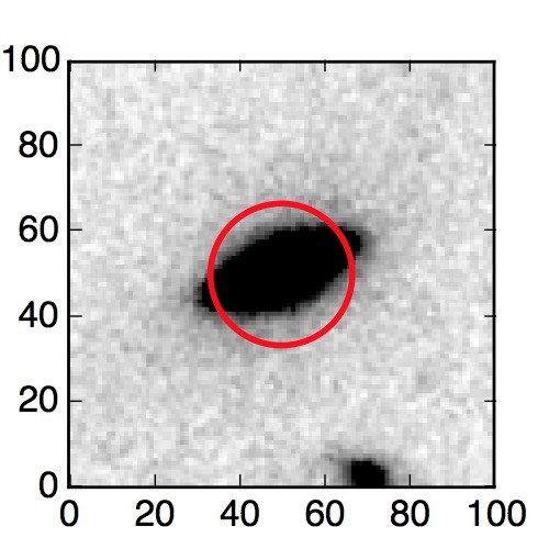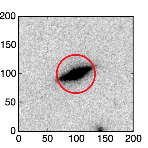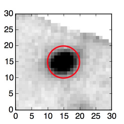 The red circle in the various panels is 1" in radius. The images are 6"x6".