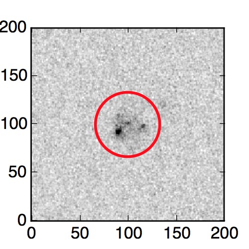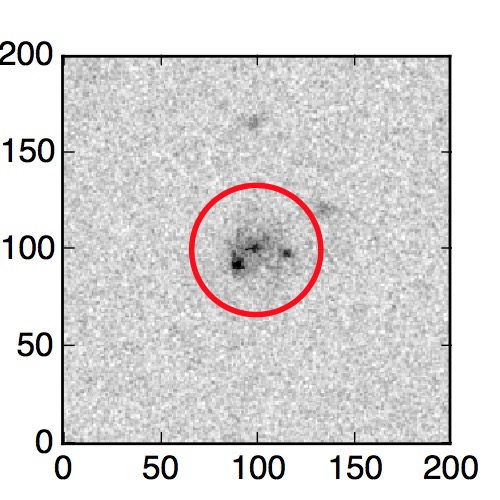 The red circle in the various panels is 1" in radius. The images are 6"x6".