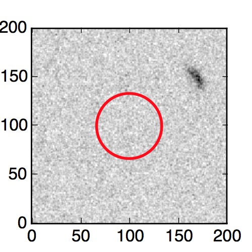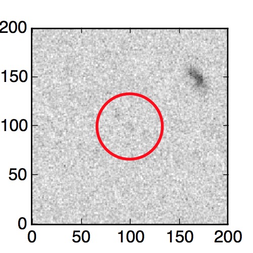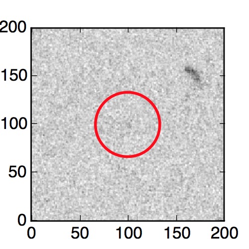 The red circle in the various panels is 1" in radius. The images are 6"x6".