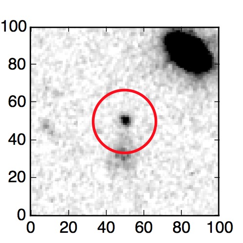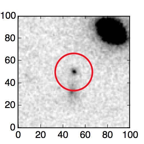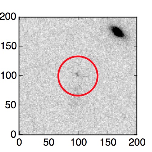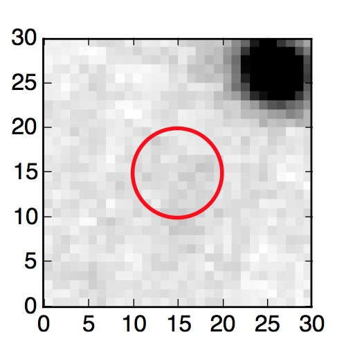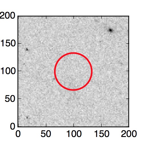 The red circle in the various panels is 1" in radius. The images are 6"x6".