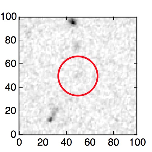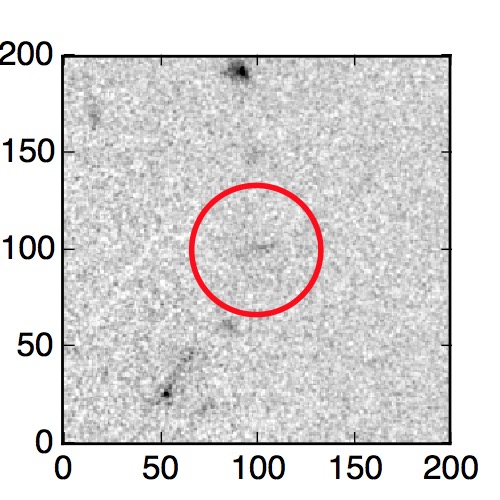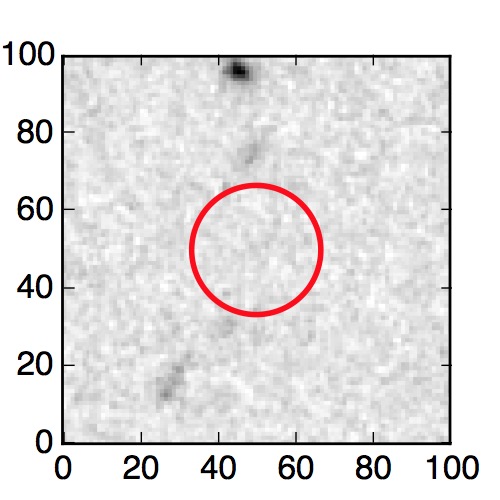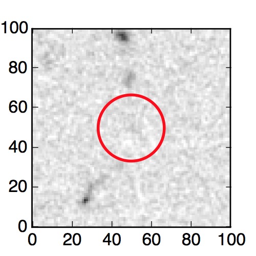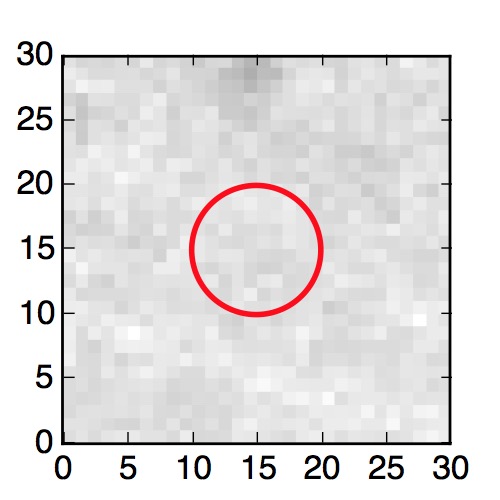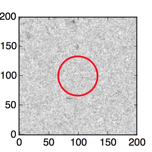 The red circle in the various panels is 1" in radius. The images are 6"x6".