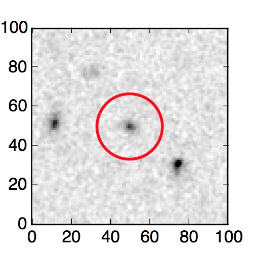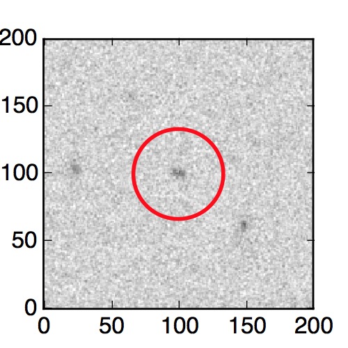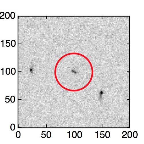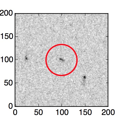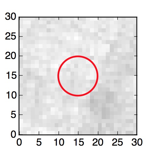 The red circle in the various panels is 1" in radius. The images are 6"x6".