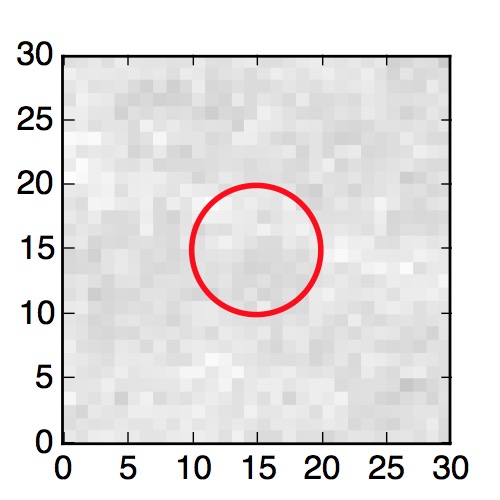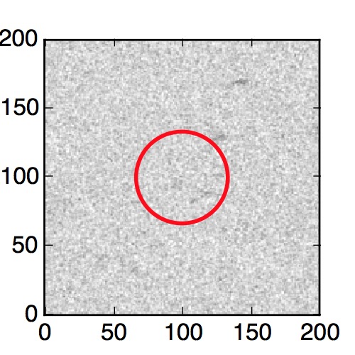 The red circle in the various panels is 1" in radius. The images are 6"x6".