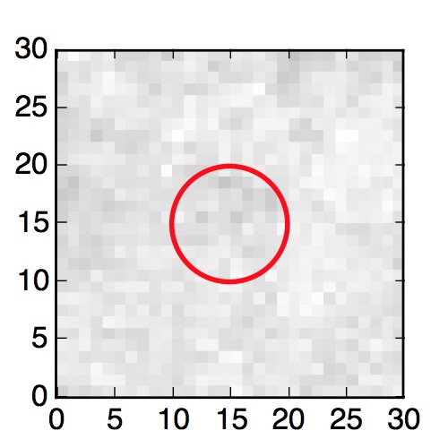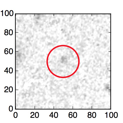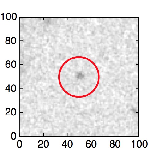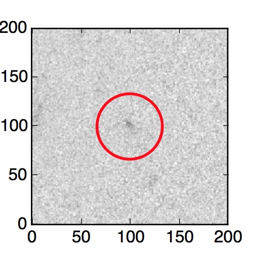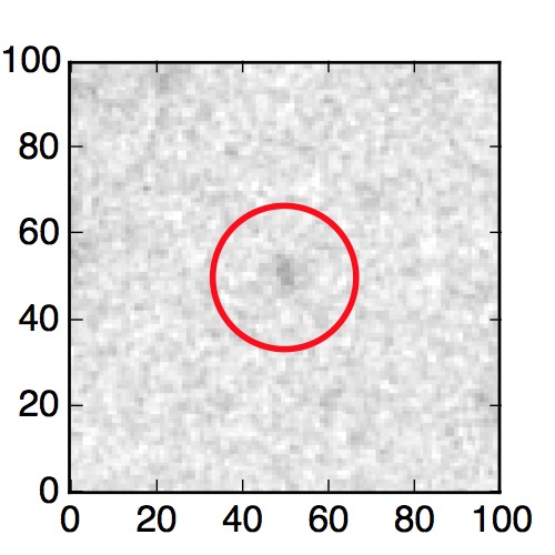 The red circle in the various panels is 1" in radius. The images are 6"x6".