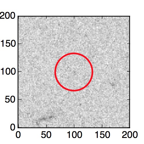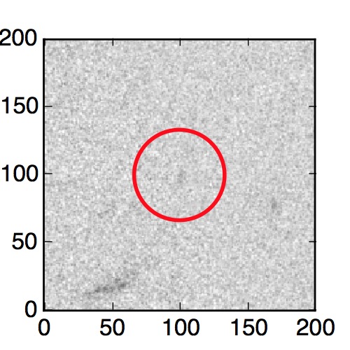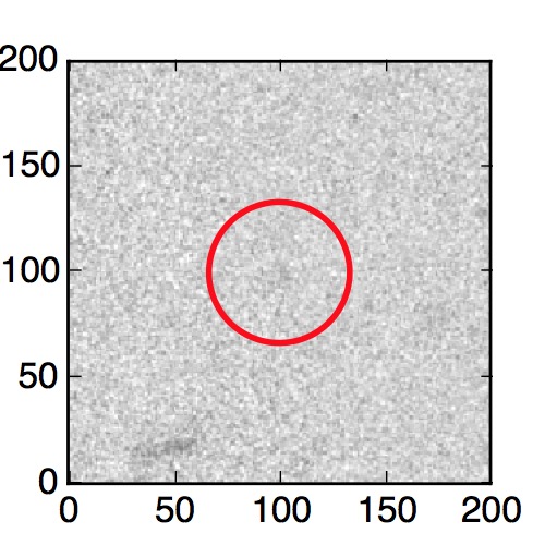 The red circle in the various panels is 1" in radius. The images are 6"x6".