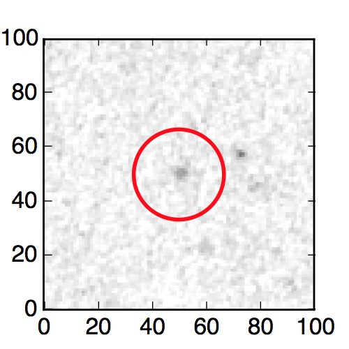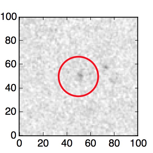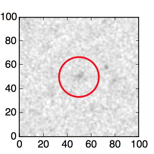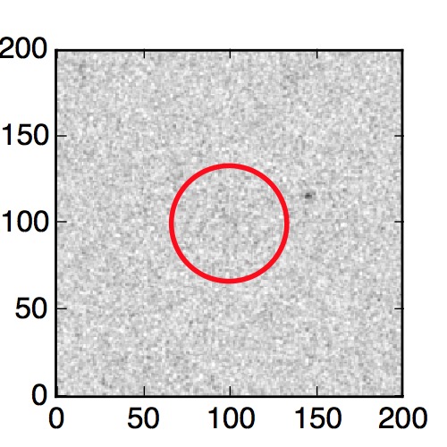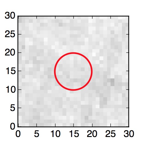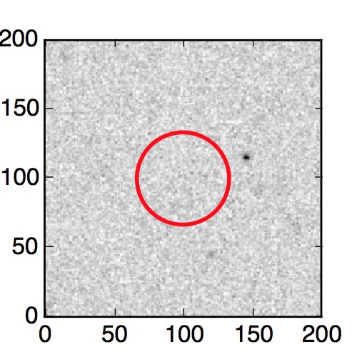 The red circle in the various panels is 1" in radius. The images are 6"x6".