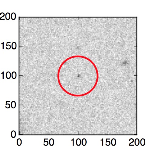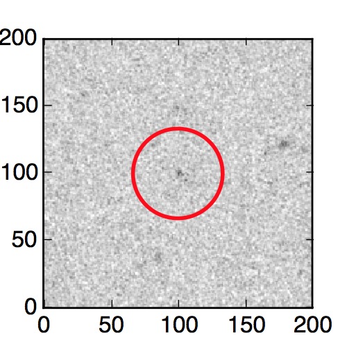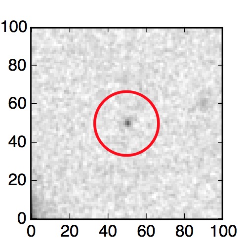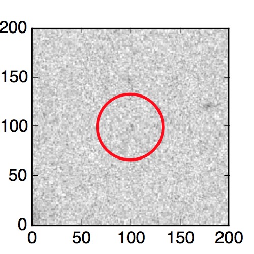 The red circle in the various panels is 1" in radius. The images are 6"x6".