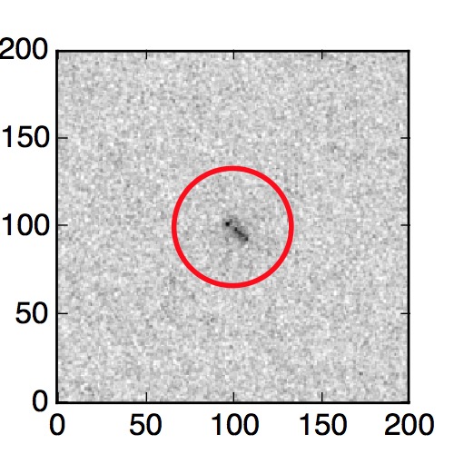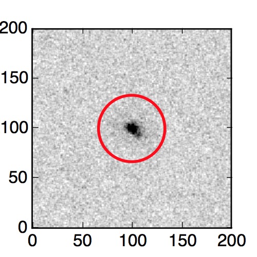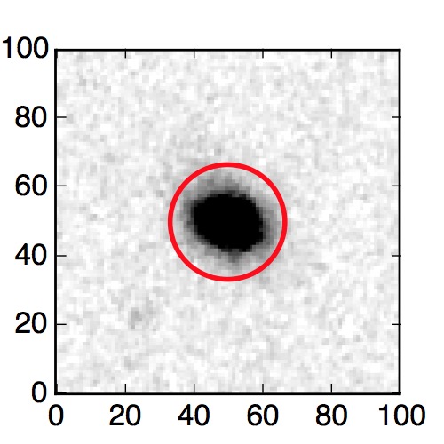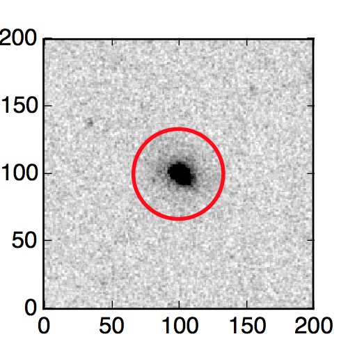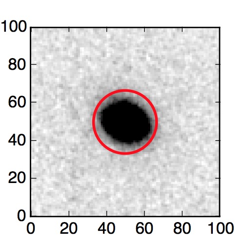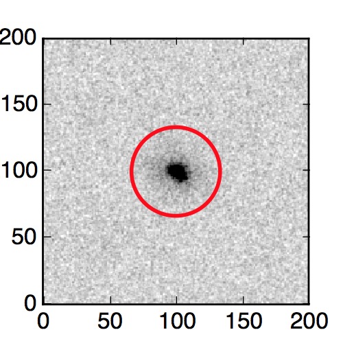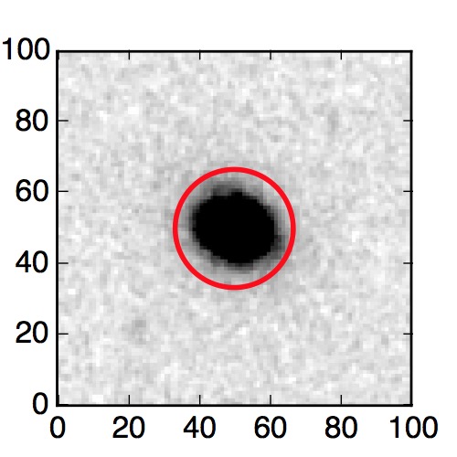 The red circle in the various panels is 1" in radius. The images are 6"x6".