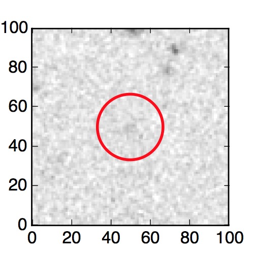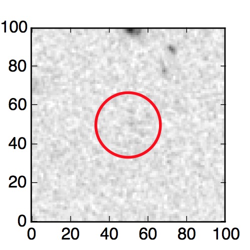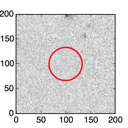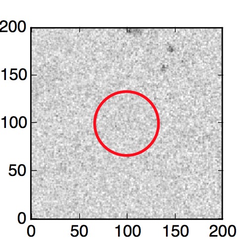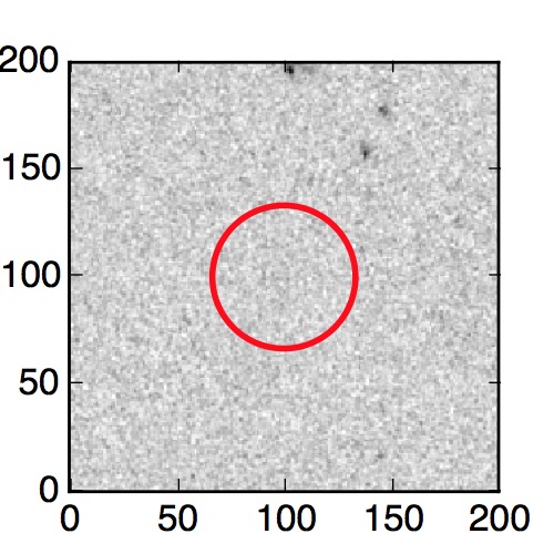 The red circle in the various panels is 1" in radius. The images are 6"x6".