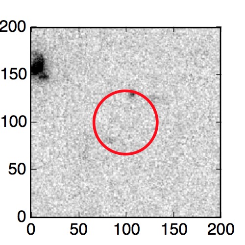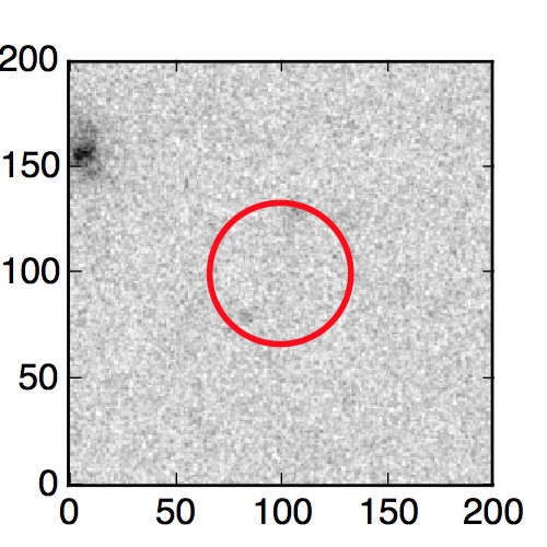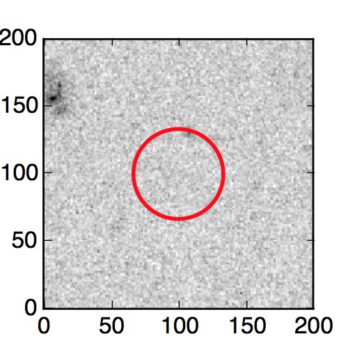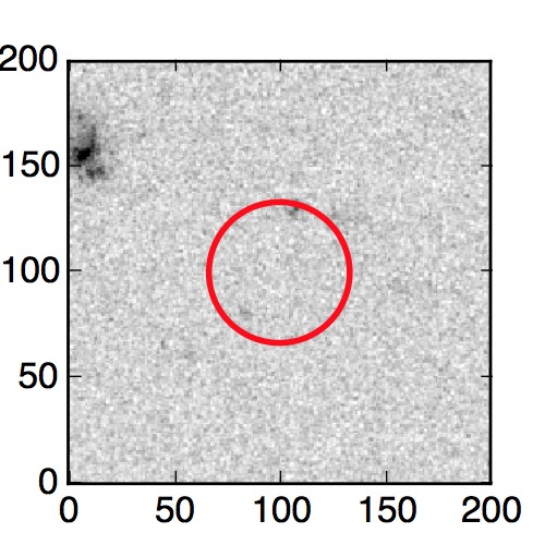 The red circle in the various panels is 1" in radius. The images are 6"x6".