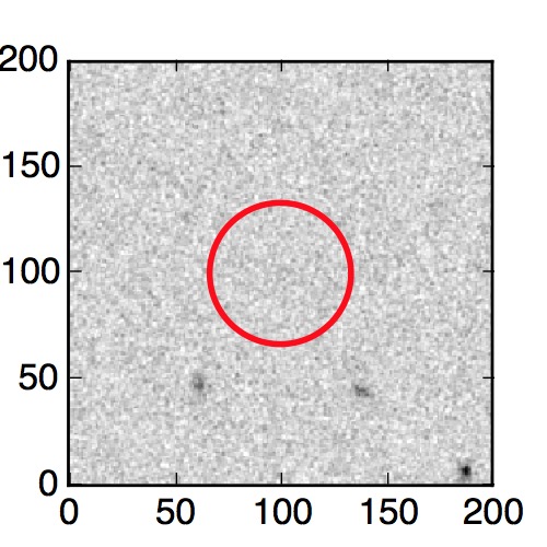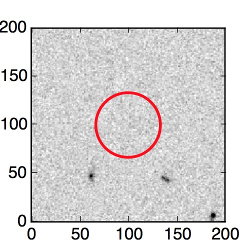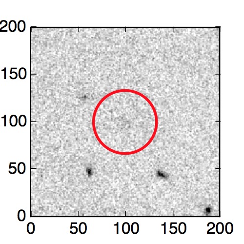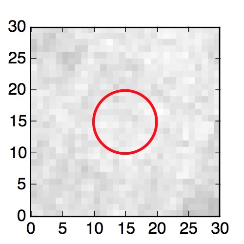 The red circle in the various panels is 1" in radius. The images are 6"x6".