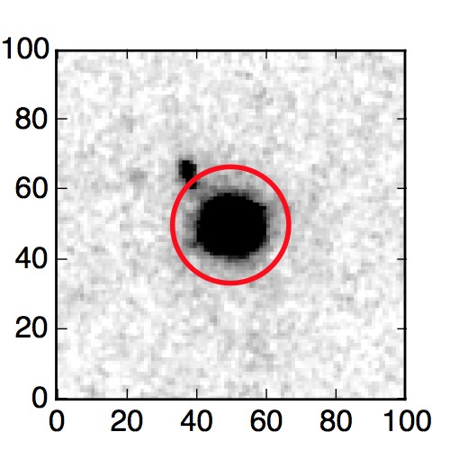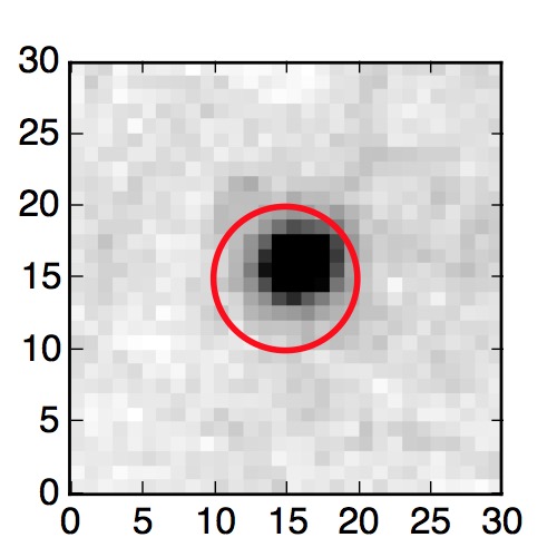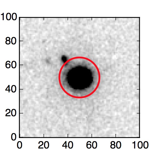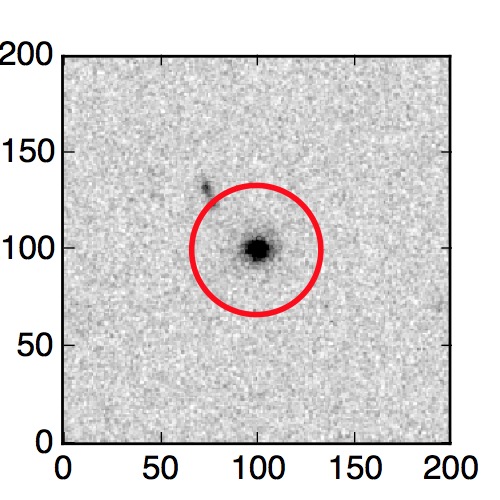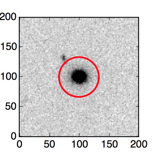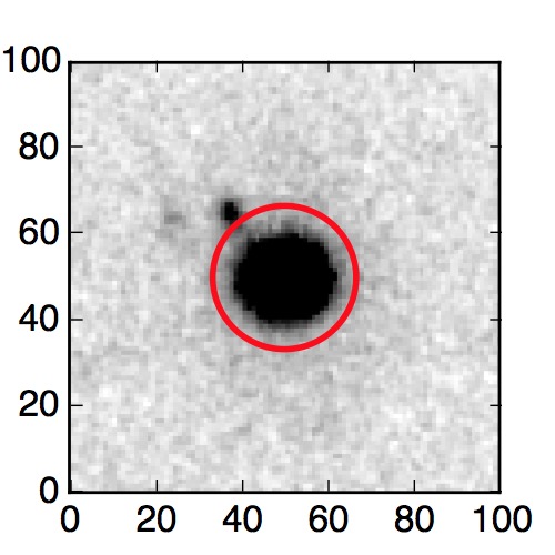 The red circle in the various panels is 1" in radius. The images are 6"x6".