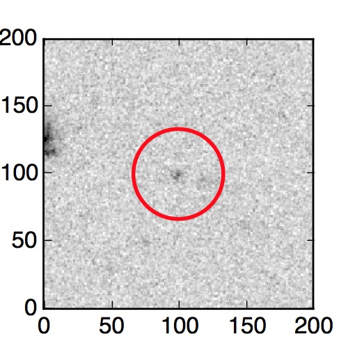 The red circle in the various panels is 1" in radius. The images are 6"x6".