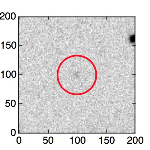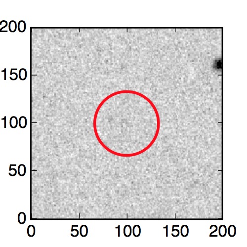 The red circle in the various panels is 1" in radius. The images are 6"x6".