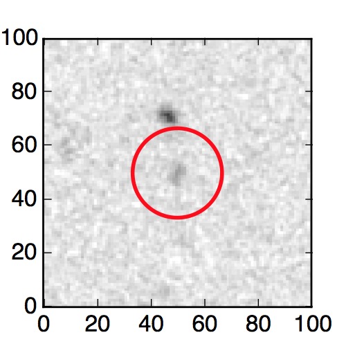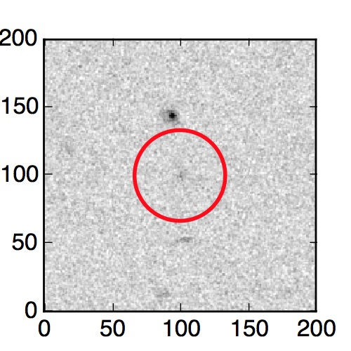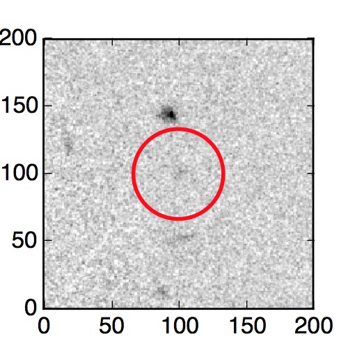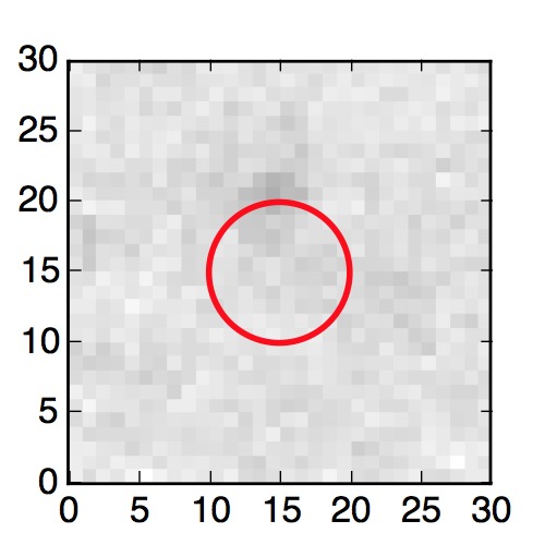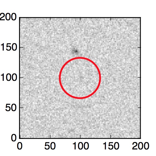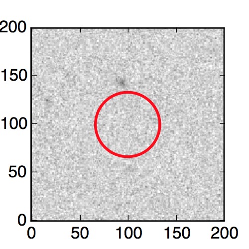 The red circle in the various panels is 1" in radius. The images are 6"x6".