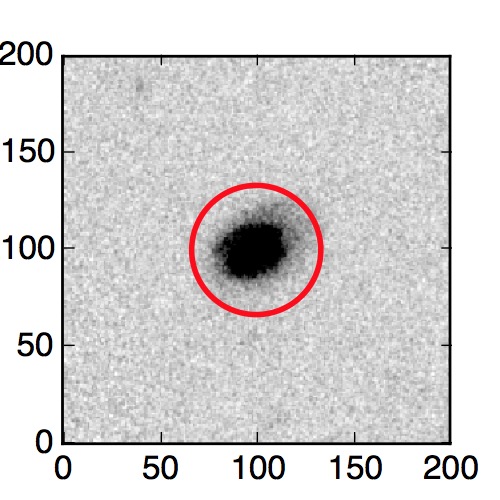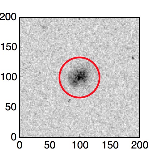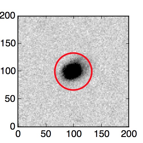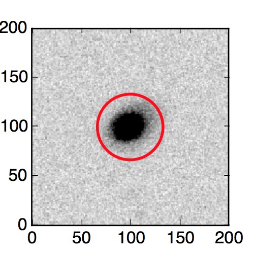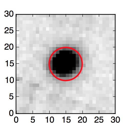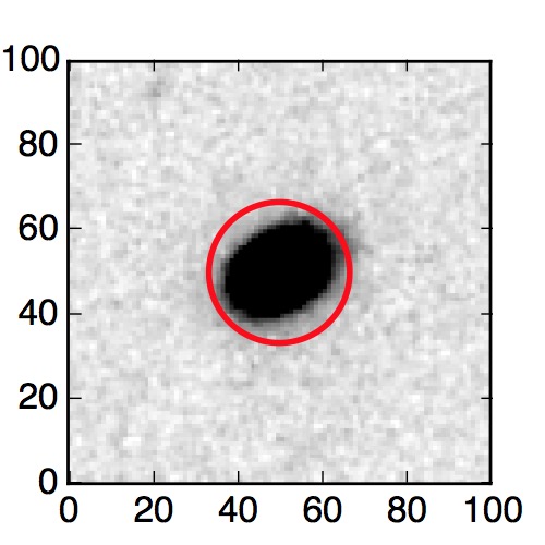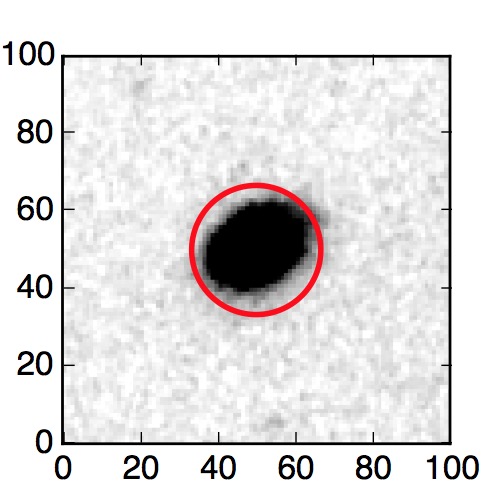 The red circle in the various panels is 1" in radius. The images are 6"x6".
