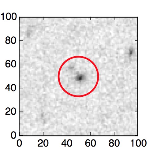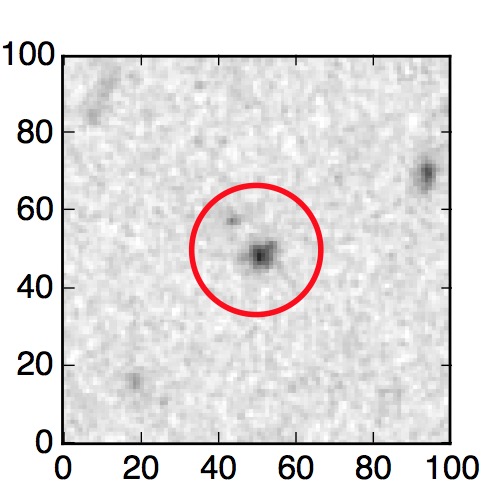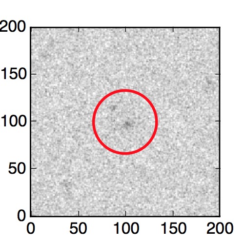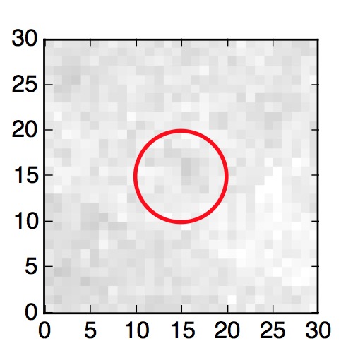 The red circle in the various panels is 1" in radius. The images are 6"x6".