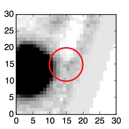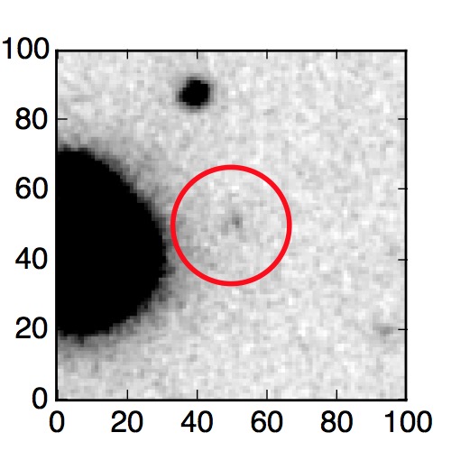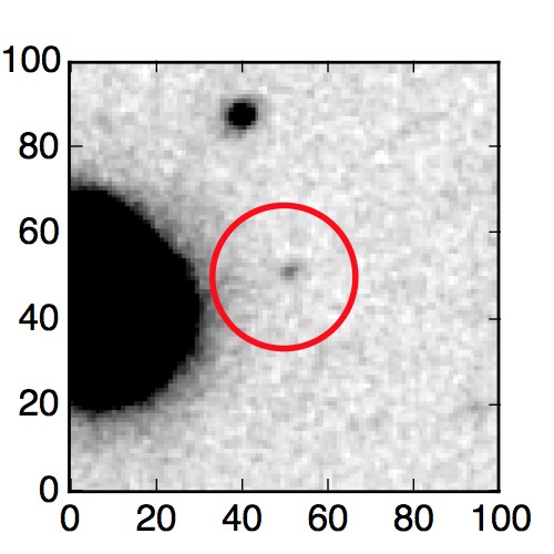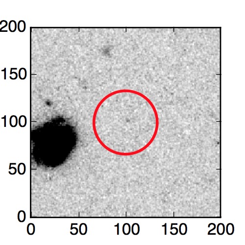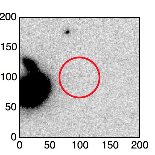The red circle in the various panels is 1" in radius. The images are 6"x6".