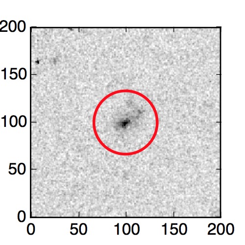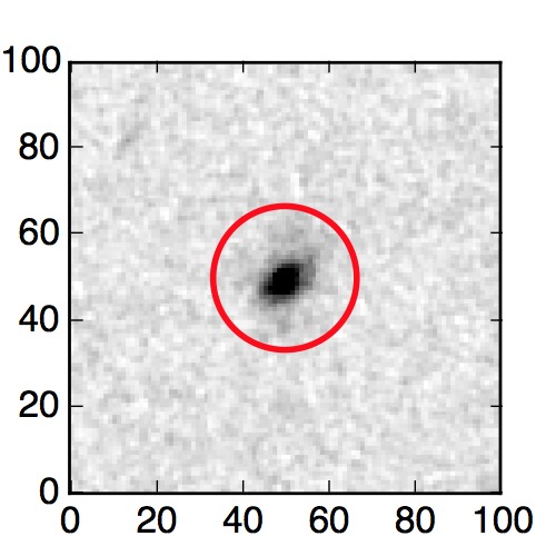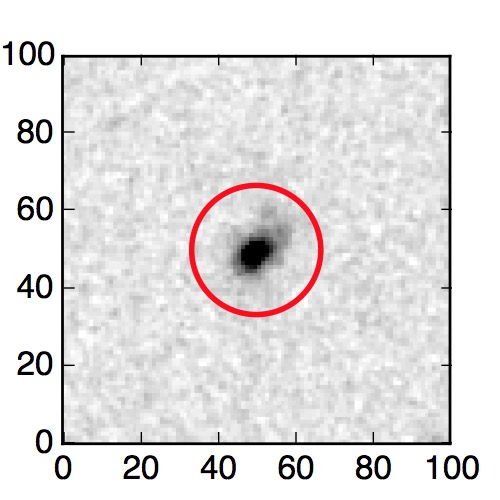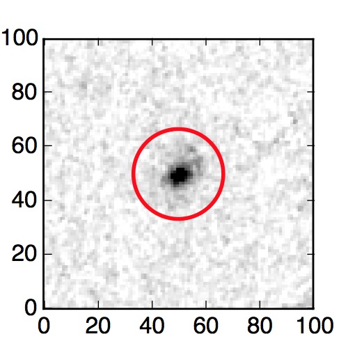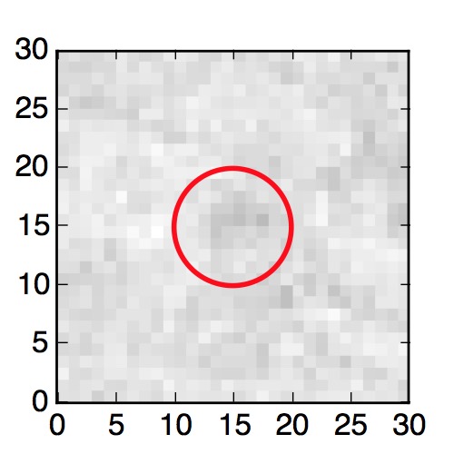 The red circle in the various panels is 1" in radius. The images are 6"x6".