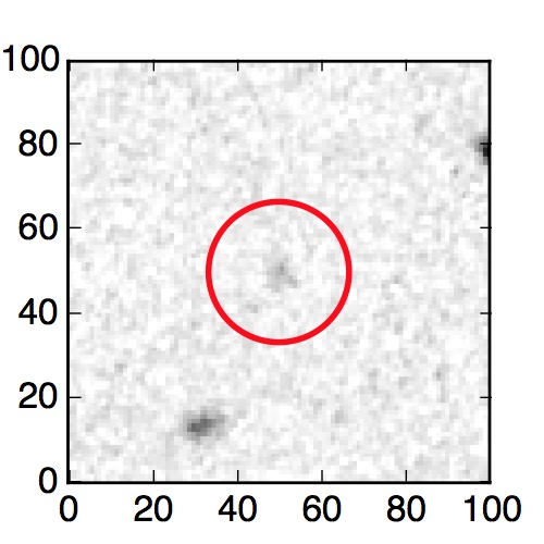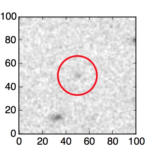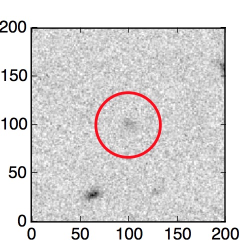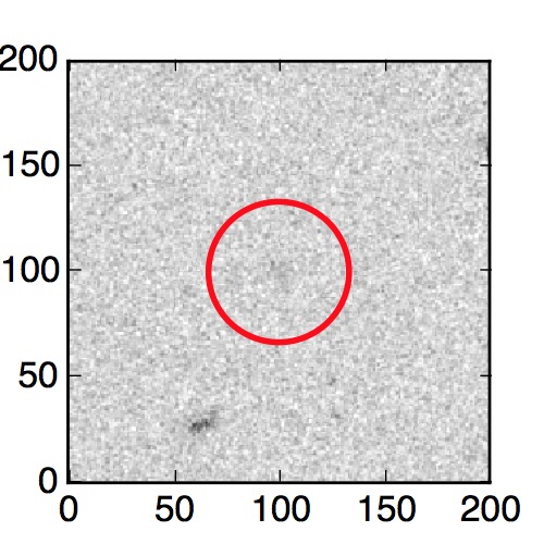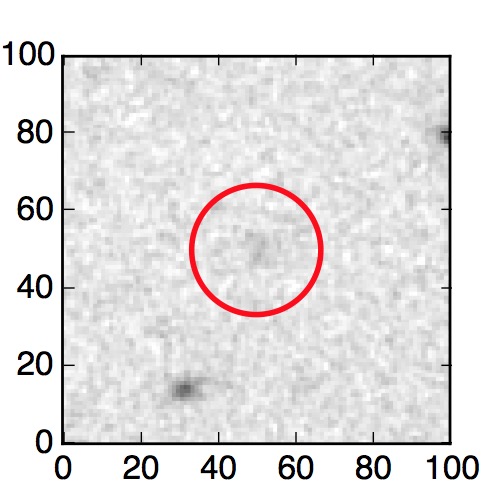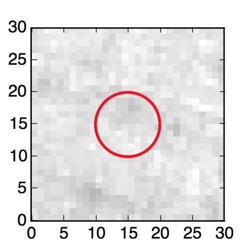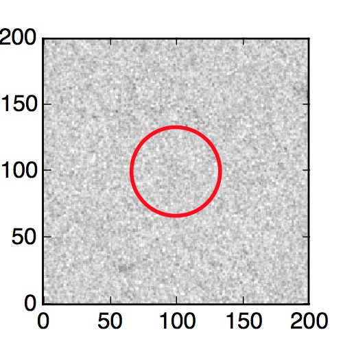 The red circle in the various panels is 1" in radius. The images are 6"x6".