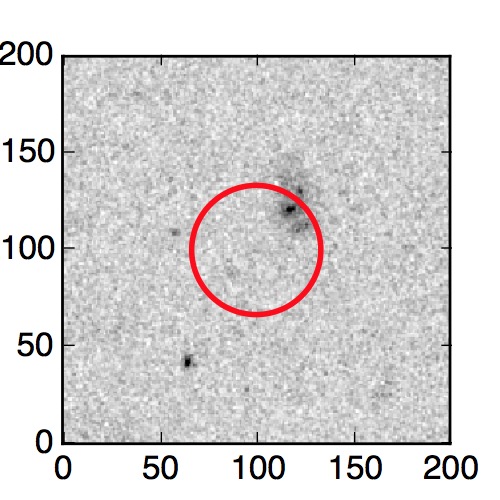 The red circle in the various panels is 1" in radius. The images are 6"x6".