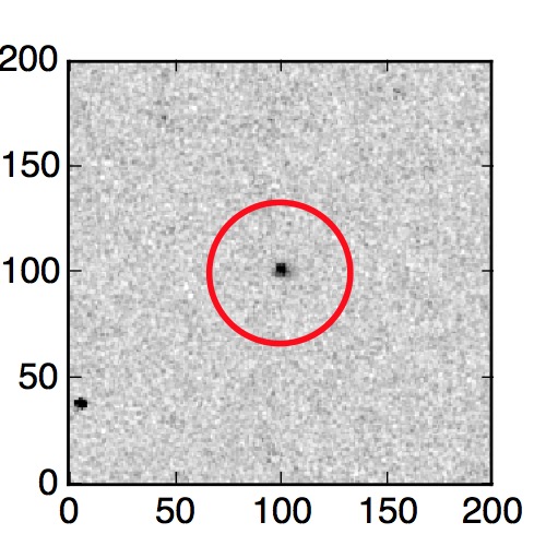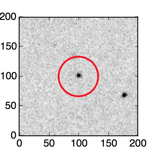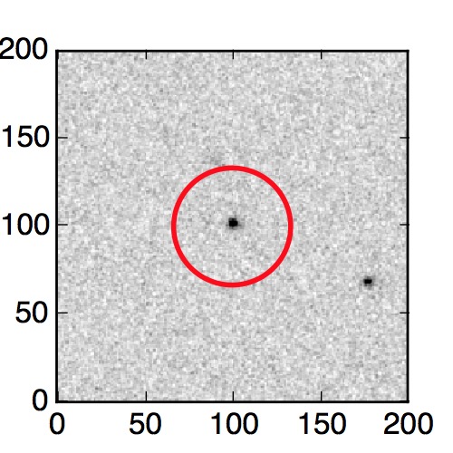 The red circle in the various panels is 1" in radius. The images are 6"x6".